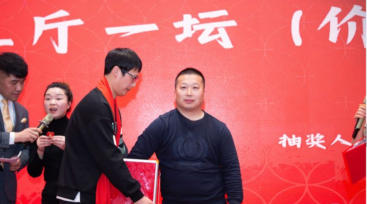 緊張的一等獎抽獎環(huán)節(jié)到來了,獎品是國臺三斤裝一壇的國臺酒,價值1099元。由鐘文先生、寧莎莎女士抽取,有四名幸運(yùn)兒。