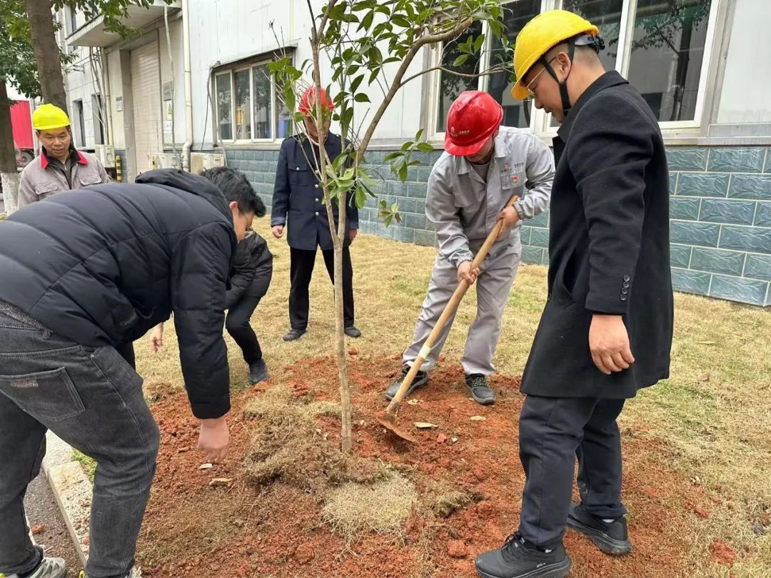 植樹現(xiàn)場,大家干勁十足,揮鍬鏟土、扶苗填坑、培土壓實(shí)、提水澆灌.....分工明確、配合默契,現(xiàn)場一片熱火朝天的景象,大家盡情享受著朝氣蓬勃的春意,用自己的雙手和汗水為公司注入新的生機(jī)與活力。